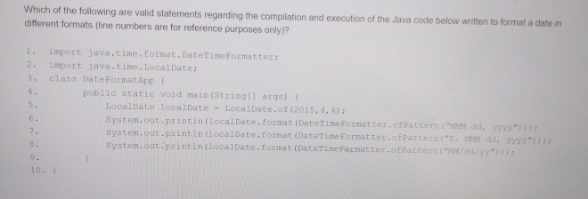 Solved java question :from line 1 to 8, which are valid and | Chegg.com