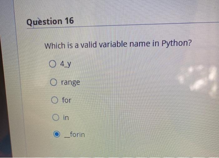 Solved Question 16 Which is a valid variable name in Python? | Chegg.com