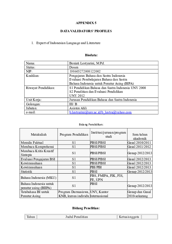 (DOC) APPENDIX 5: DATA VALIDATORS’ PROFILES