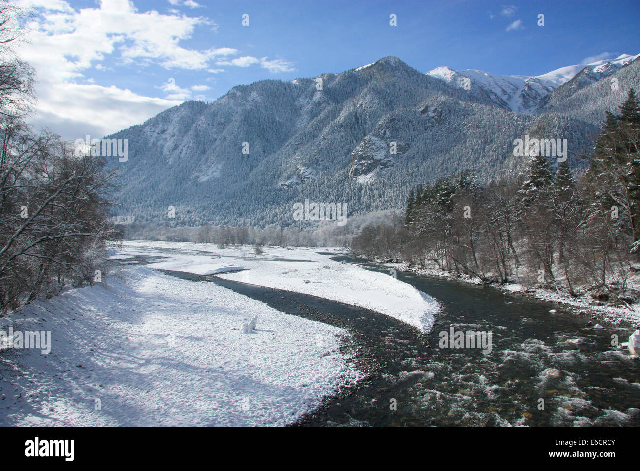 Mountain river valley landscape. River valley in mountains Stock Photo ...