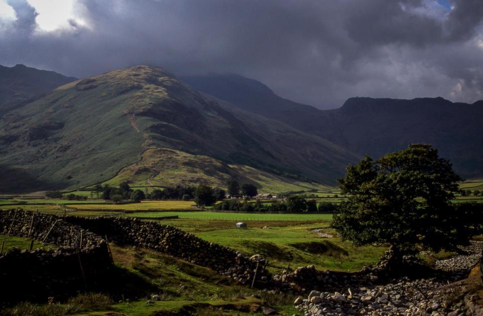 Download Peaceful Mountainous Valley Slope Wallpaper | Wallpapers.com