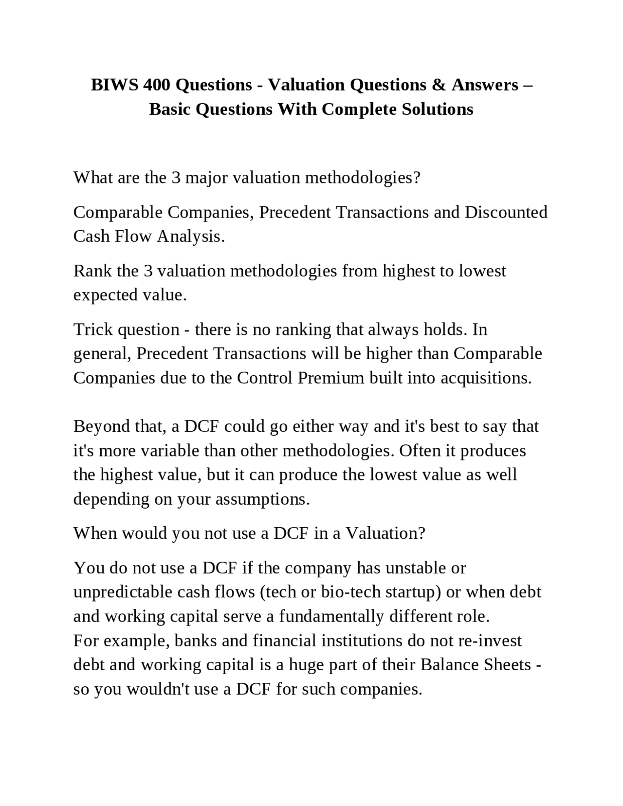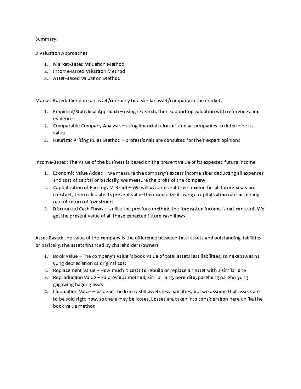 Valuation Methodologies and Techniques | Exams Finance | Docsity
