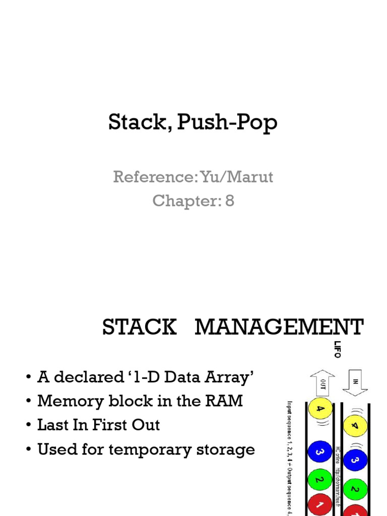 Stack.pdf - Stack Operations Push - means to put values on top of the a ...