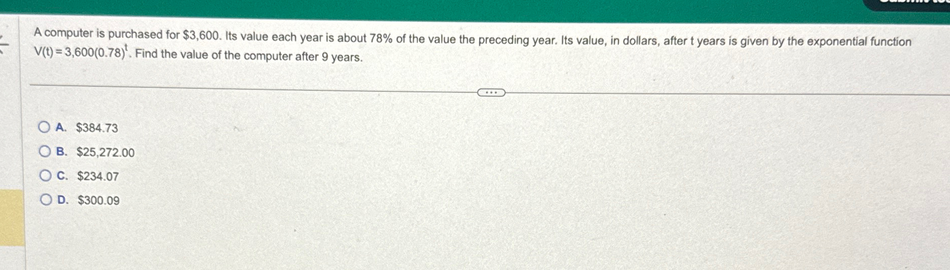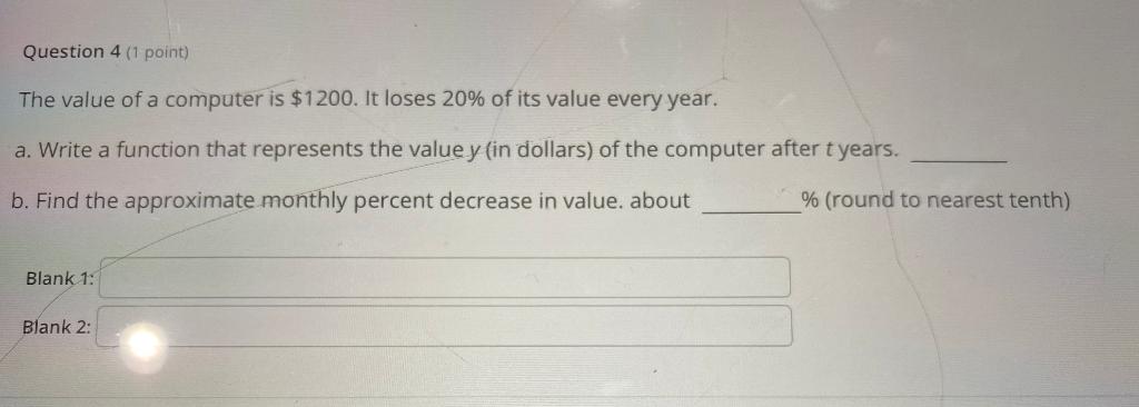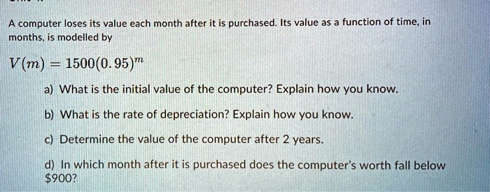 Solved Question 4 (1 point) The value of a computer is | Chegg.com