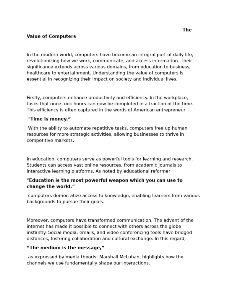 Essay Writing On The Value of Computer | Essay On Science • Englishilm ...