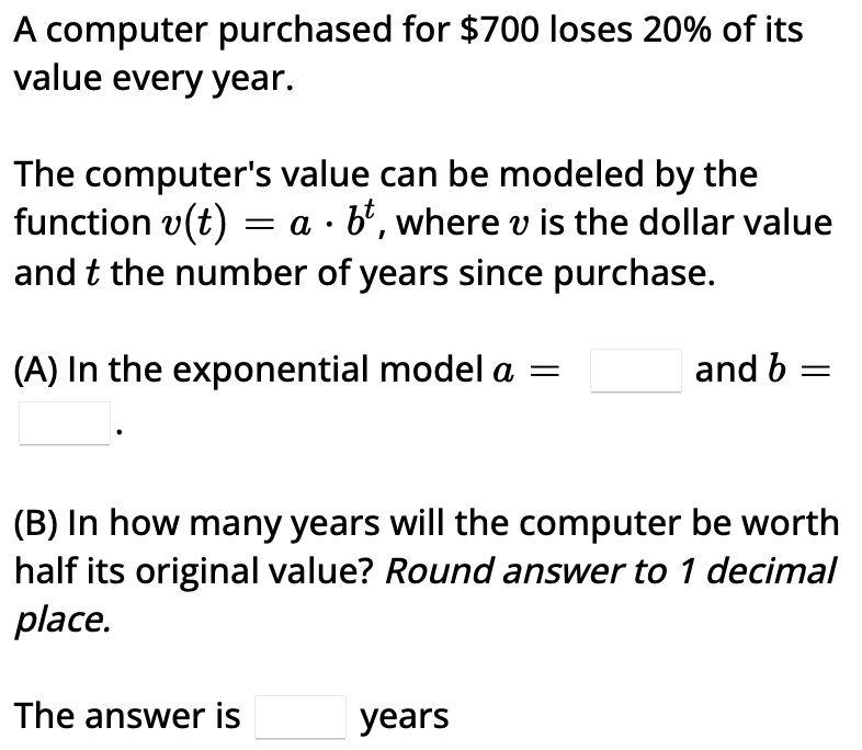 Solved A computer purchased for $700 loses 20% of its value | Chegg.com
