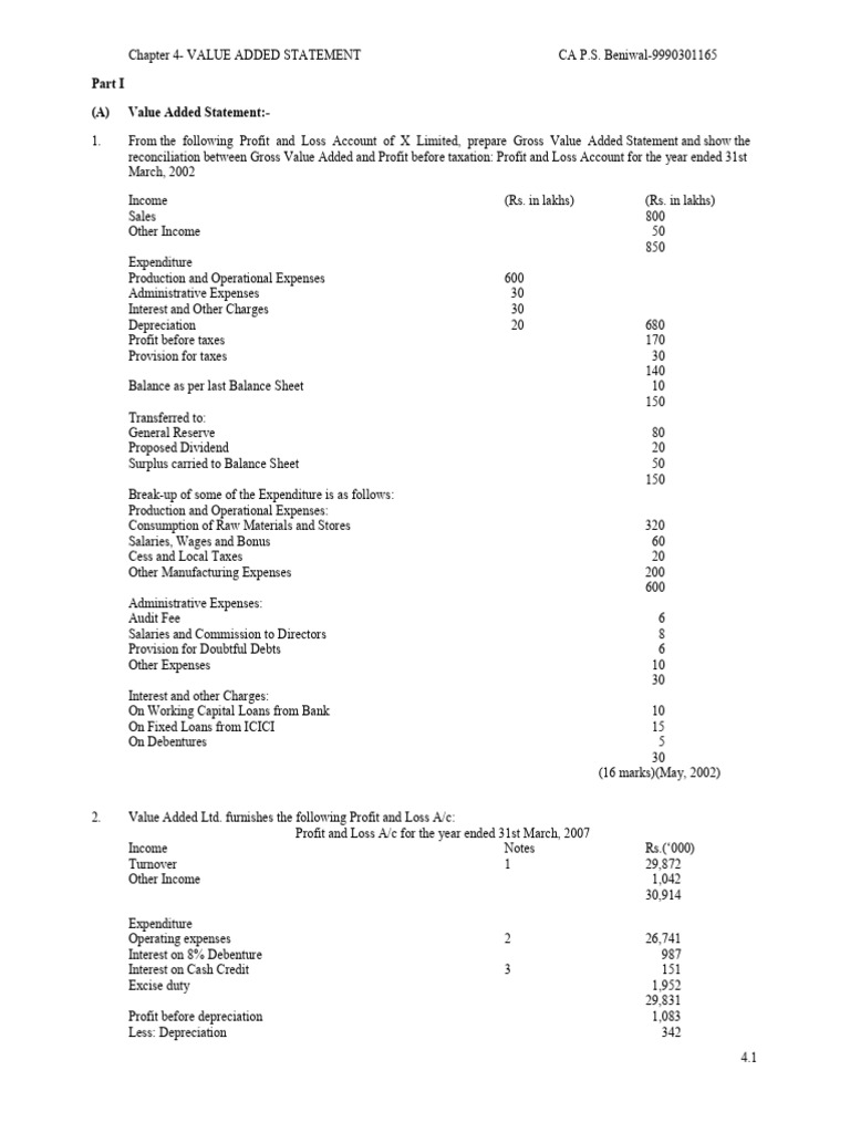 (A) Value Added Statement | PDF | Expense | Taxes