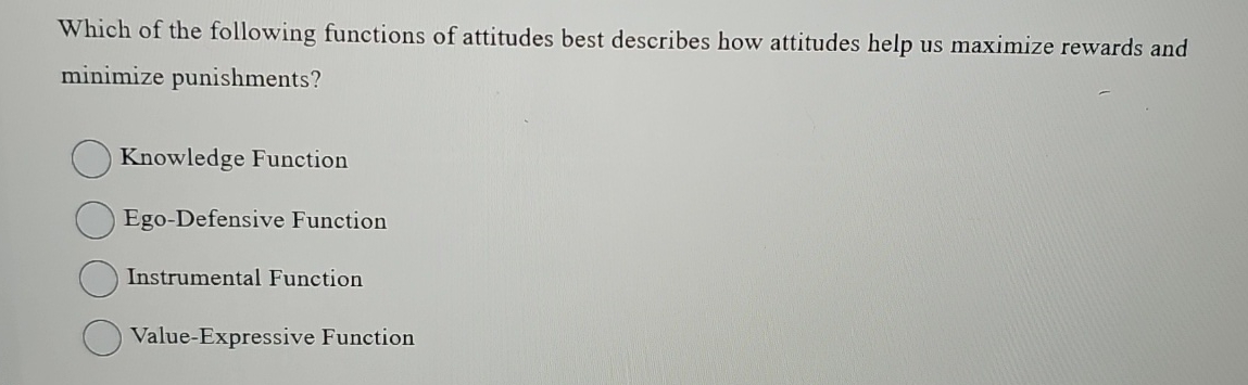 Solved Which of the following functions of attitudes best | Chegg.com