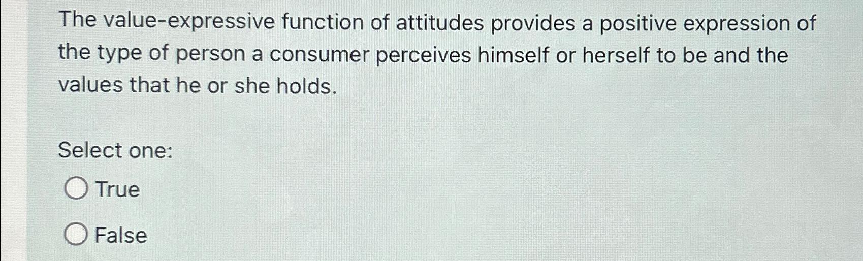 Solved The value-expressive function of attitudes provides a | Chegg.com