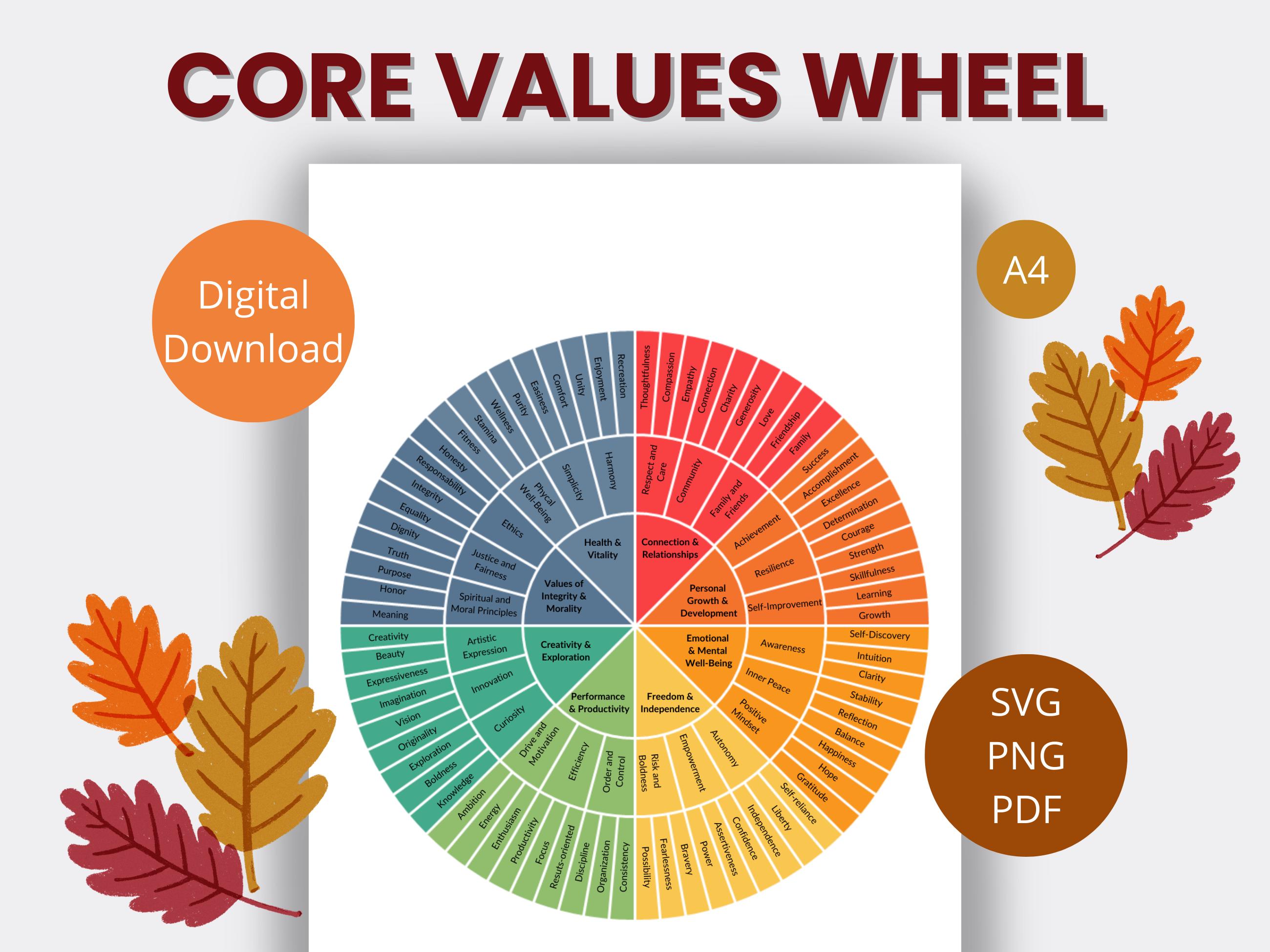 Personal Values Wheel Poster, Core Values, Adapted Emotion or Feelings ...