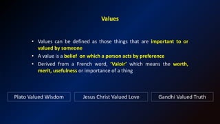 VALUES - Definition of values & Characteristics of values ...
