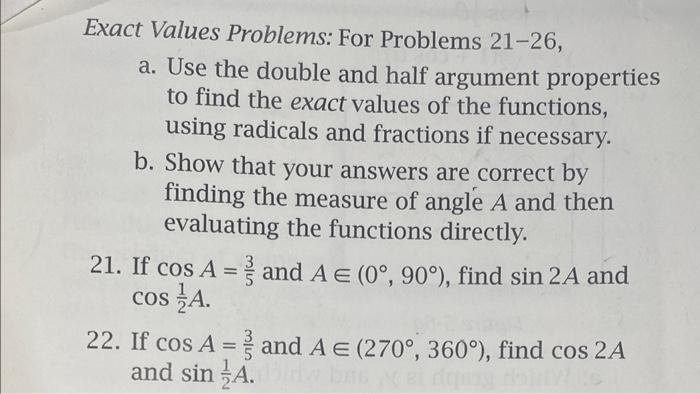 Solved Exact Values Problems: For Problems 21-26, a. Use the | Chegg.com