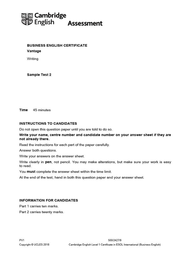 BEC Vantage: Sample Test | Writing test, Test, Sample