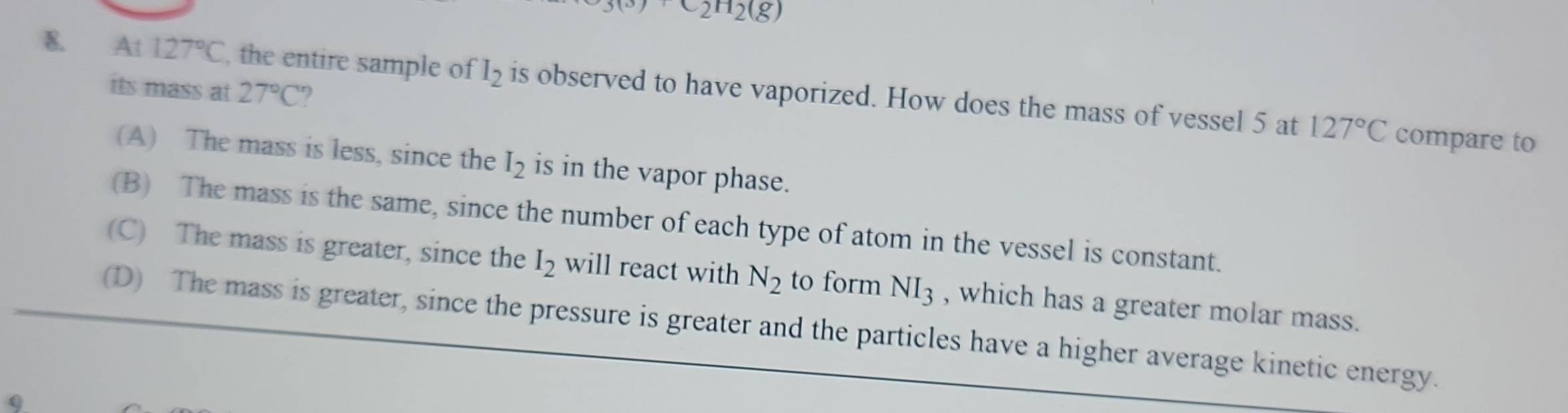 Solved: C_2H_2(g) 8. At 127°C the entire sample of I_2 is observed to ...
