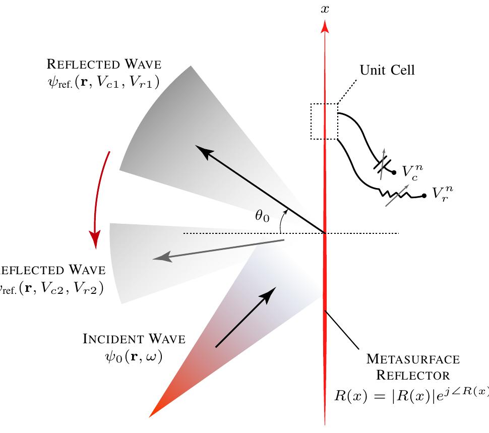 Illustration of a reconfigurable metasurface reflector which