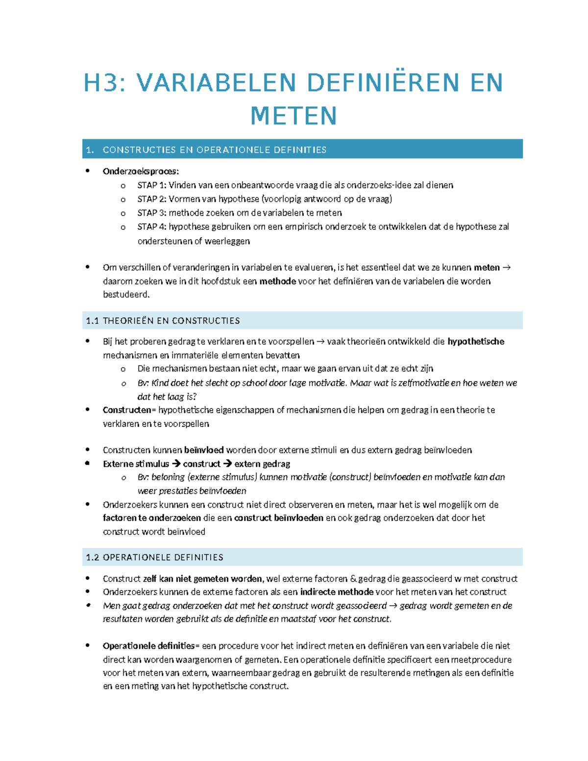 Samenvatting H3: Variabelen Definiëren en Meten in Kwantitatief ...