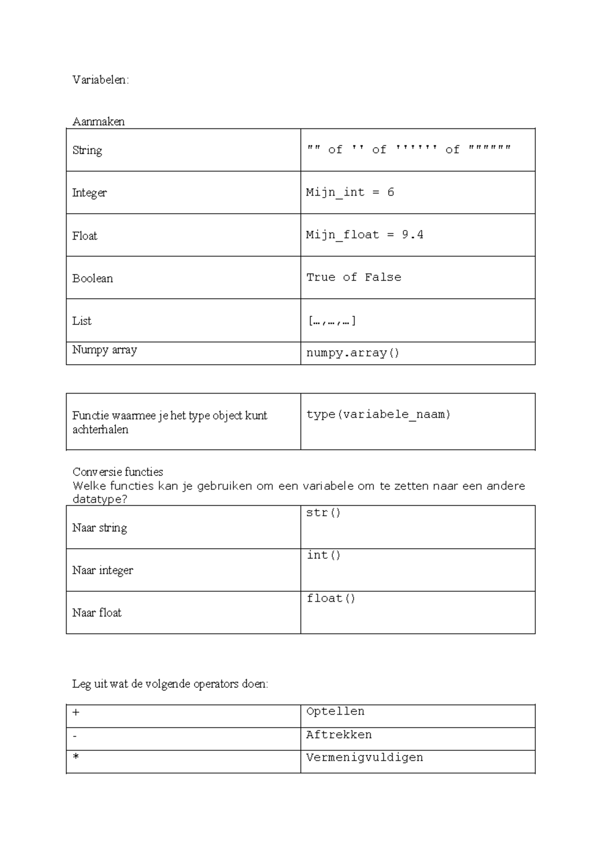 Python Variabelen & Functies - Hulpbijles 101: Syntaxlijst - Studeersnel