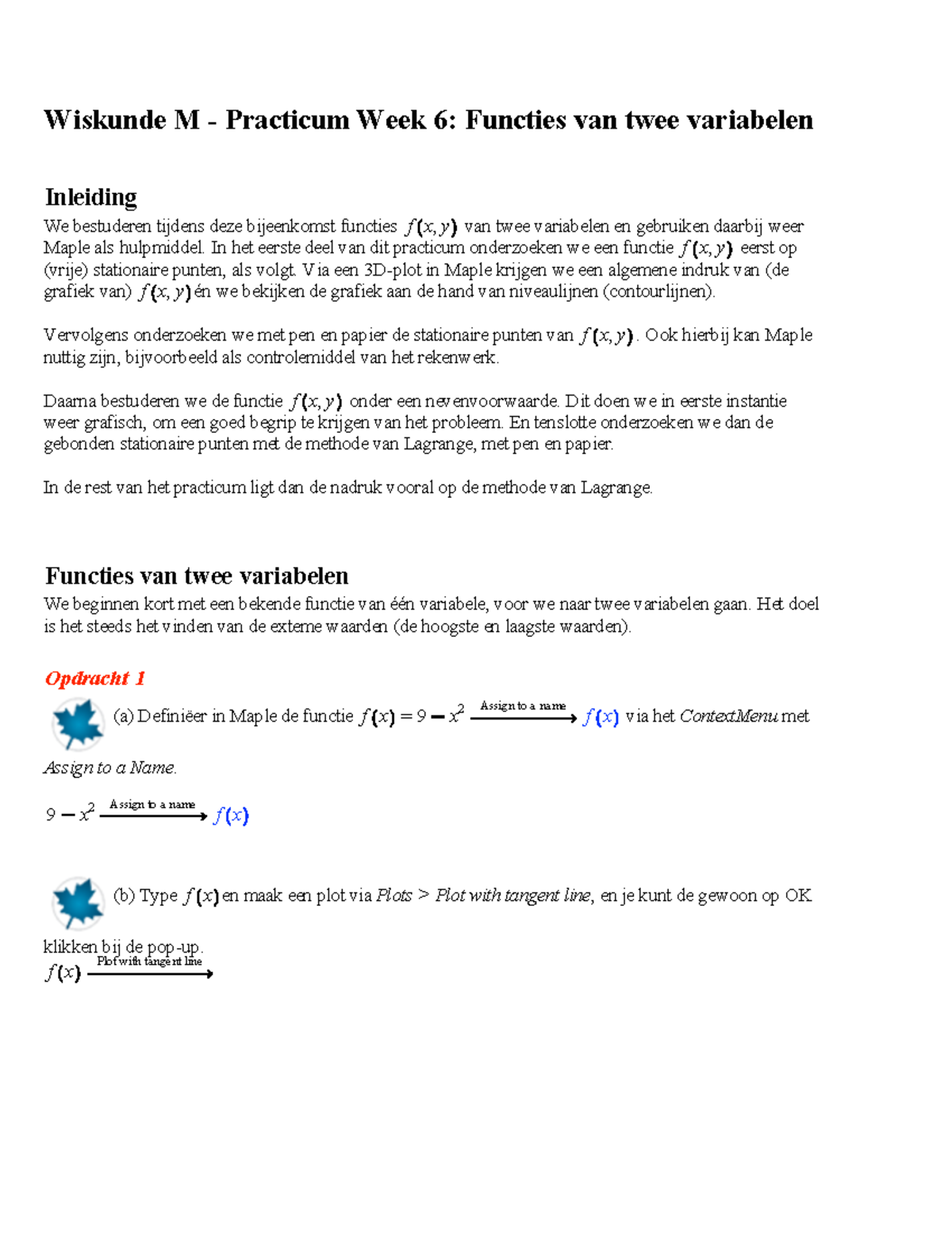 Practicum 6: Functies van Twee Variabelen en Lagrange Methode - Studeersnel