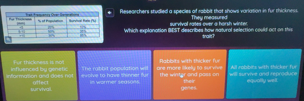 Solved: Researchers studied a species of rabbit that shows variation in ...
