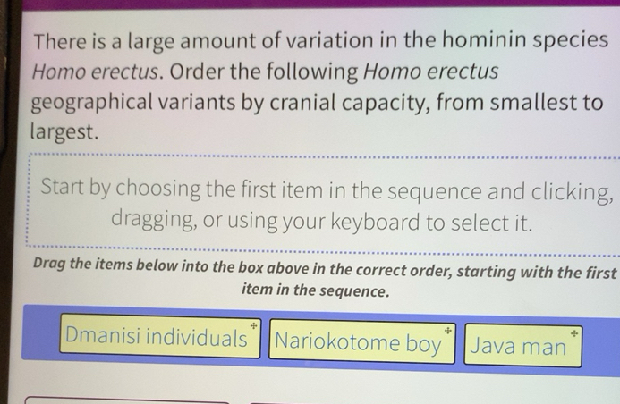 Solved: There is a large amount of variation in the hominin species ...