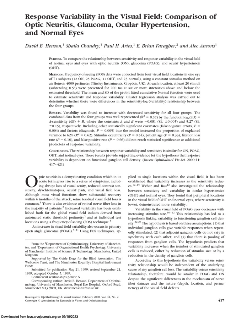 Response Variability in The Visual Field: Comparison of Optic Neuritis ...