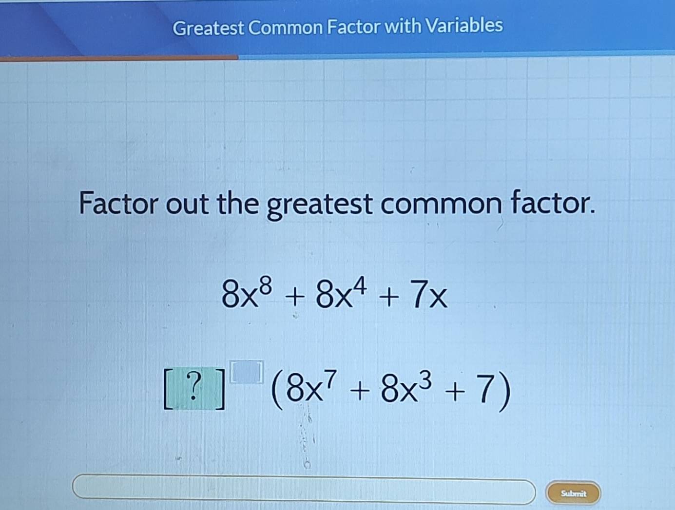 Solved: Greatest Common Factor with Variables Factor out the greatest ...