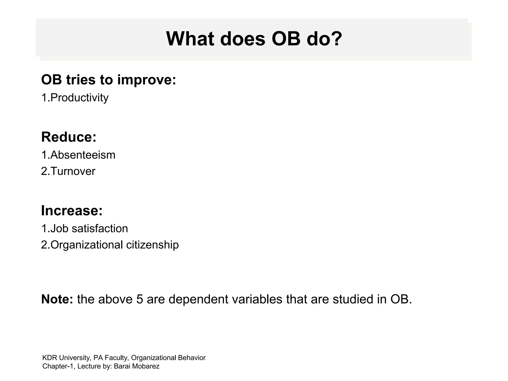 Lecture#1 part II OB Introduction to OB, Challenges to OB, Variables of ...