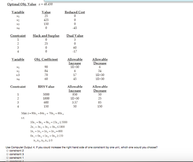 Solved -48.450 25 150 25 Variable Ob.Coefficient Allowable | Chegg.com