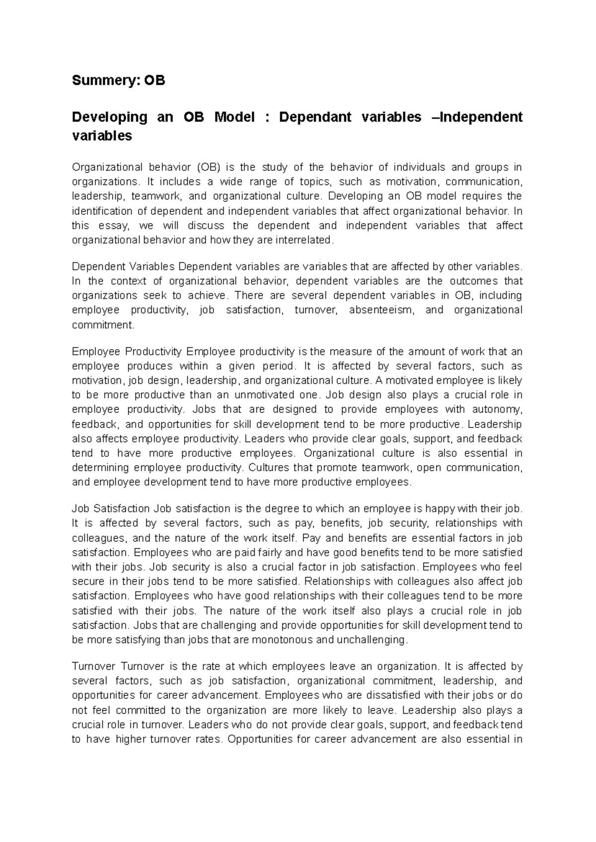 Developing an OB Model: Examining Dependent & Independent Variables ...