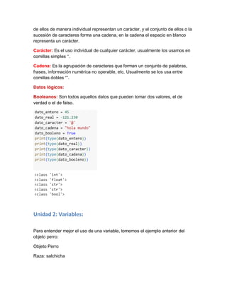 Variables en Python | PDF | Cadena (informática) | Python (lenguaje de ...