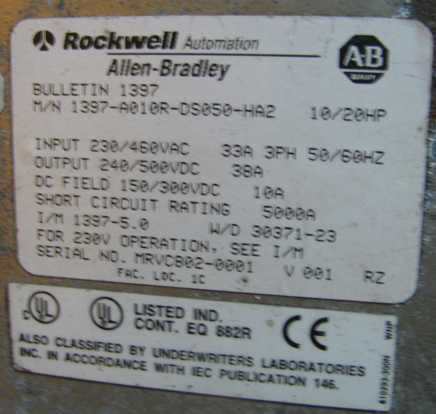 10HP 230VAC TO 240VDC ALLEN BRADLEY TYPE 1397 VARIABLE VOLTAGE MODULE