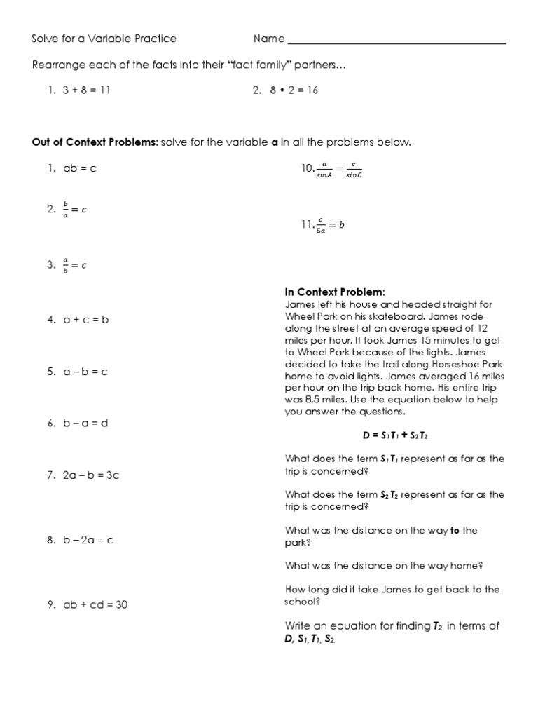 Practice Solving for Variables Worksheet by Amber Faircloth | TPT