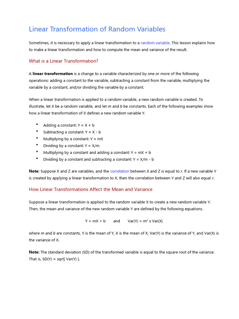 Linear Transformation of Random Variables | PDF | Variance | Teaching ...