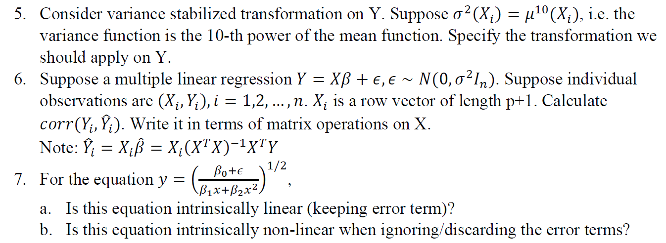 Solved 5. Consider variance stabilized transformation on Y. | Chegg.com