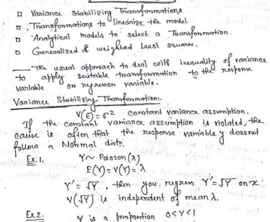 Lecture Notes on Variance Stabilizing Transformations | STA 6207 - Docsity