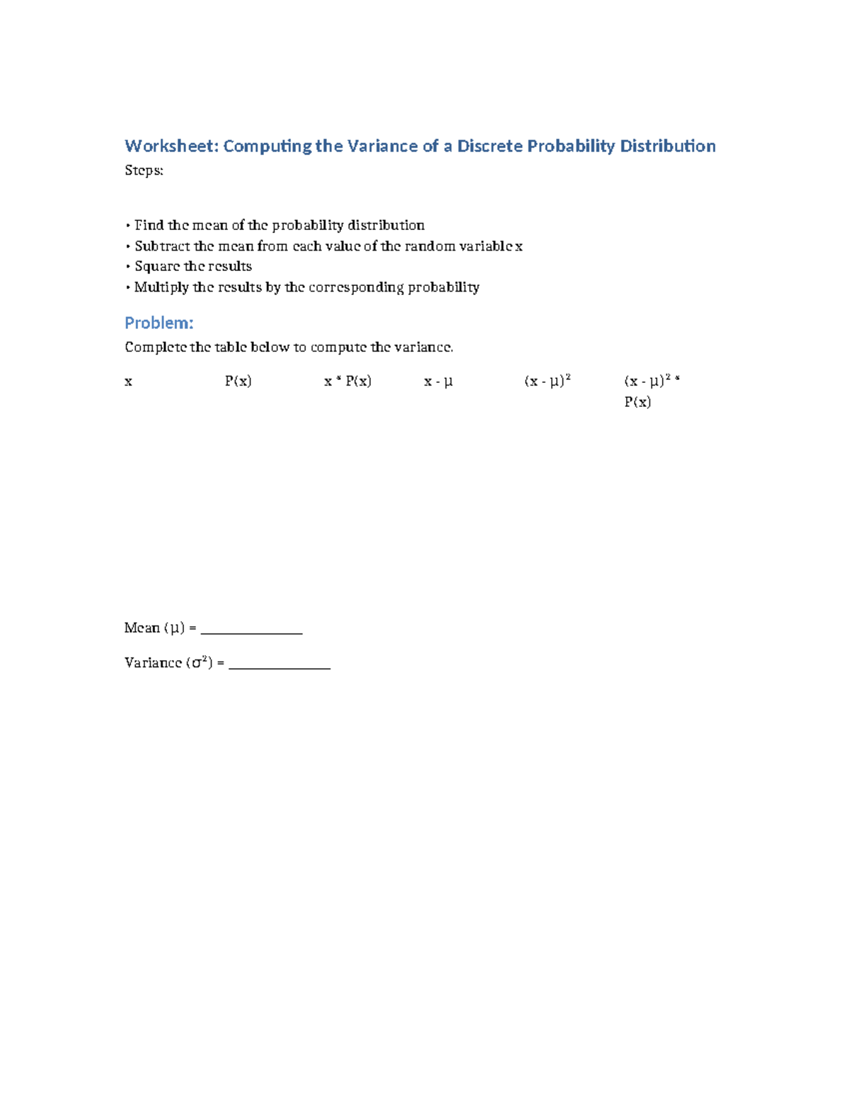 1.1 mean, variance and standard deviation | PPT - Worksheets Library