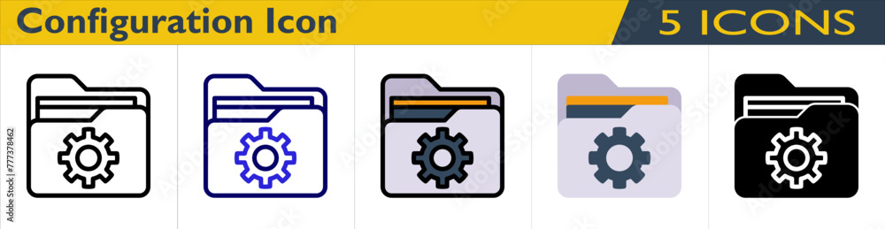 Configuration icon with 5 styles (outline, color outline, color lineal ...