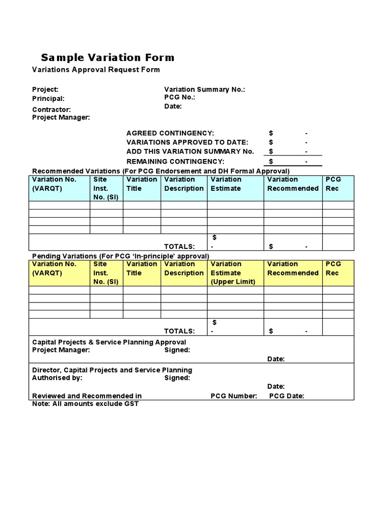 Project Variation Form | PDF