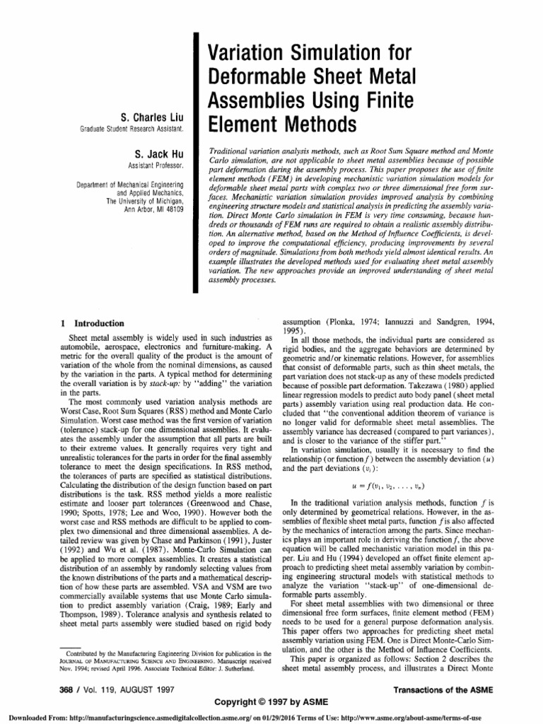 Variation Simulation For Deformable Sheet Metal Assemblies Using Finite ...