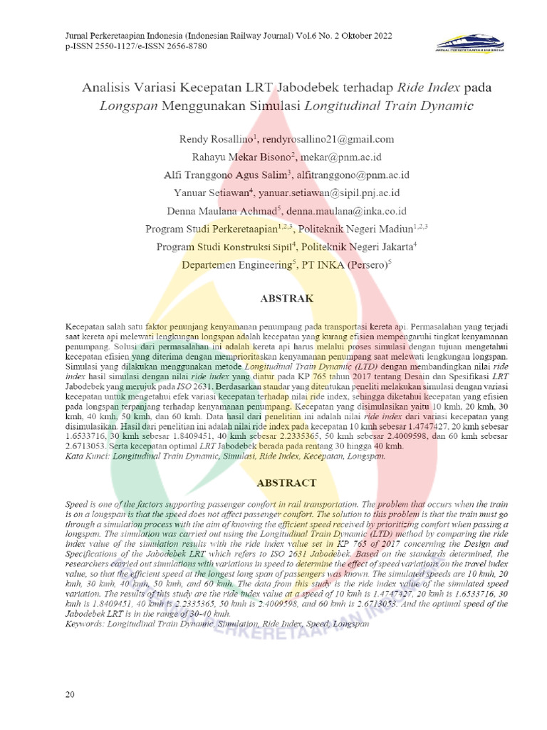 View of Analysis of Variation Velocity LRT Jabodebek On Longspan For ...