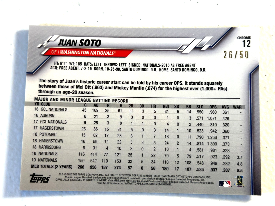 2020 Topps Chrome - Photo Variation SP - Bat Drop #12 Juan Soto Mint ...
