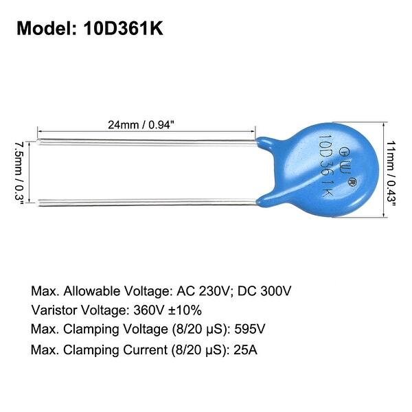 50Pcs Voltage Dependent Resistors AC 230V 10D361K Radial Lead Disc ...