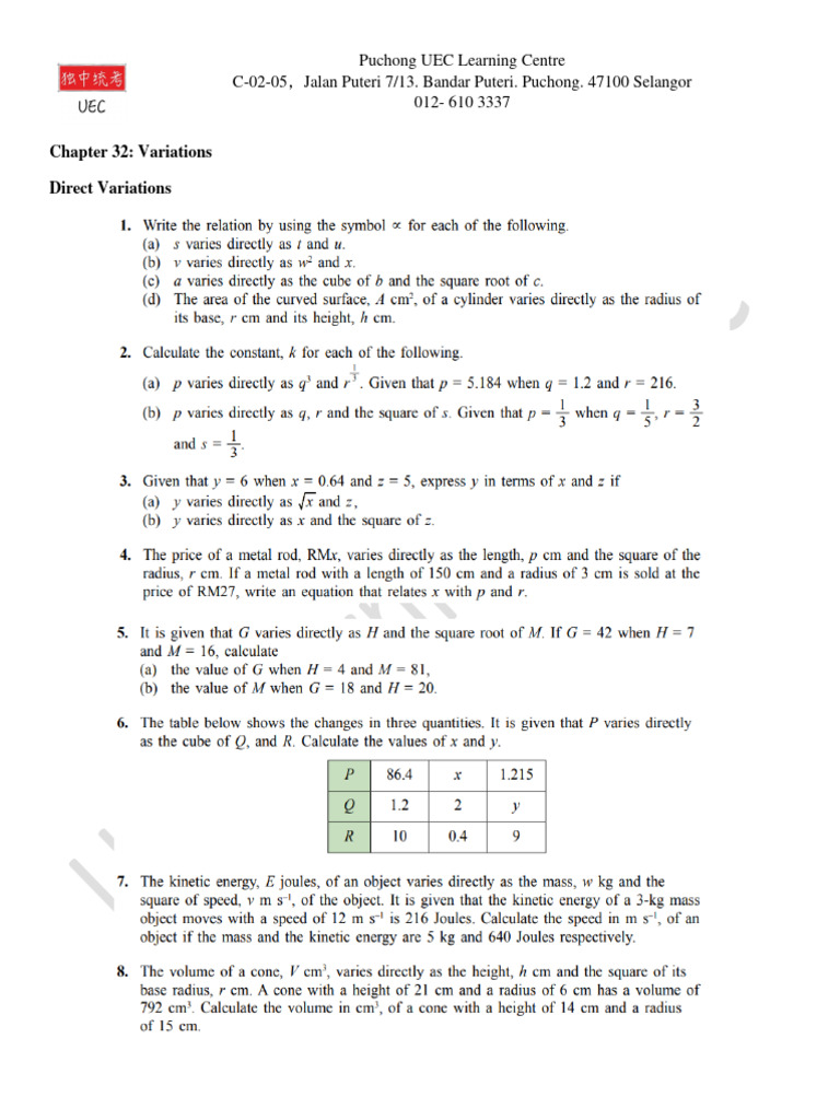 Mathematics Form 5 Chapter 5 Variations - YouTube