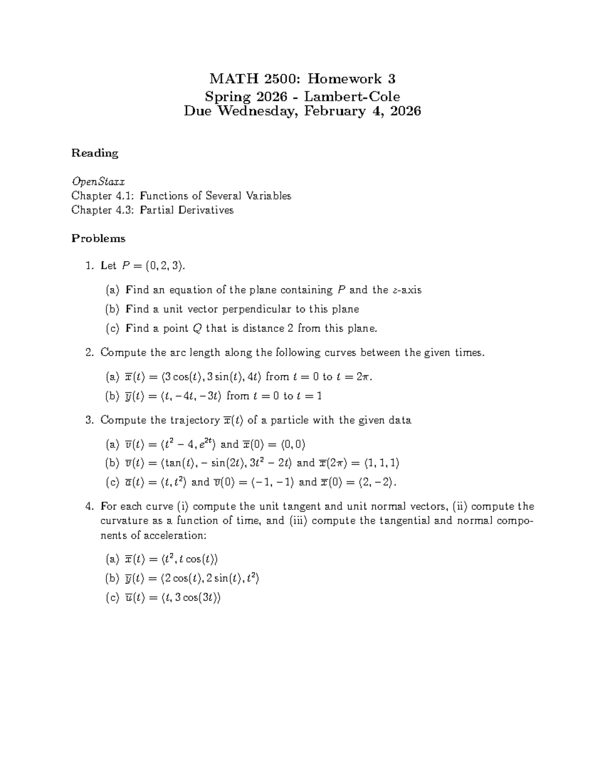 MATH 2500: Homework 3 - Functions of Several Variables & Derivatives ...