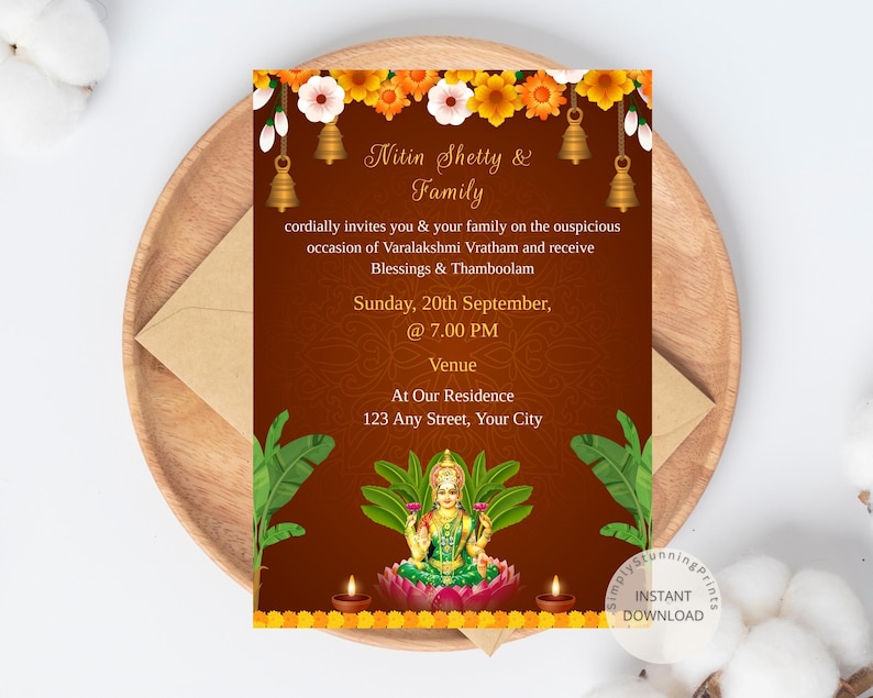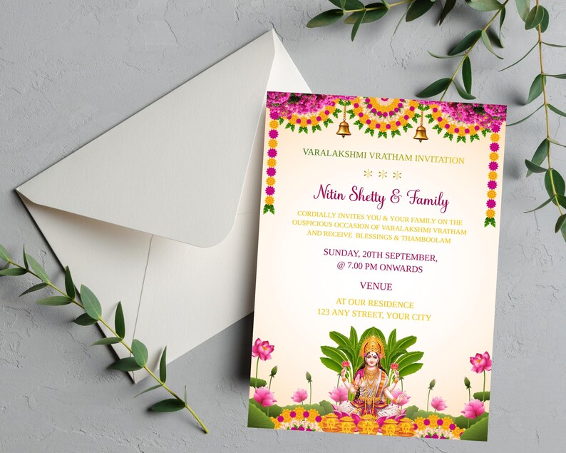 Varalakshmi Vratham Invitation: South Indian Lakshmi Pooja (digital ...