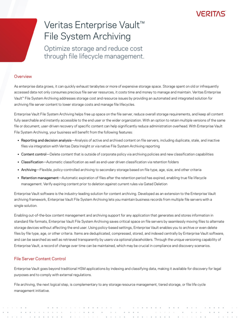 Enterprise Vault File System Archiving | PDF | Computer File | File System
