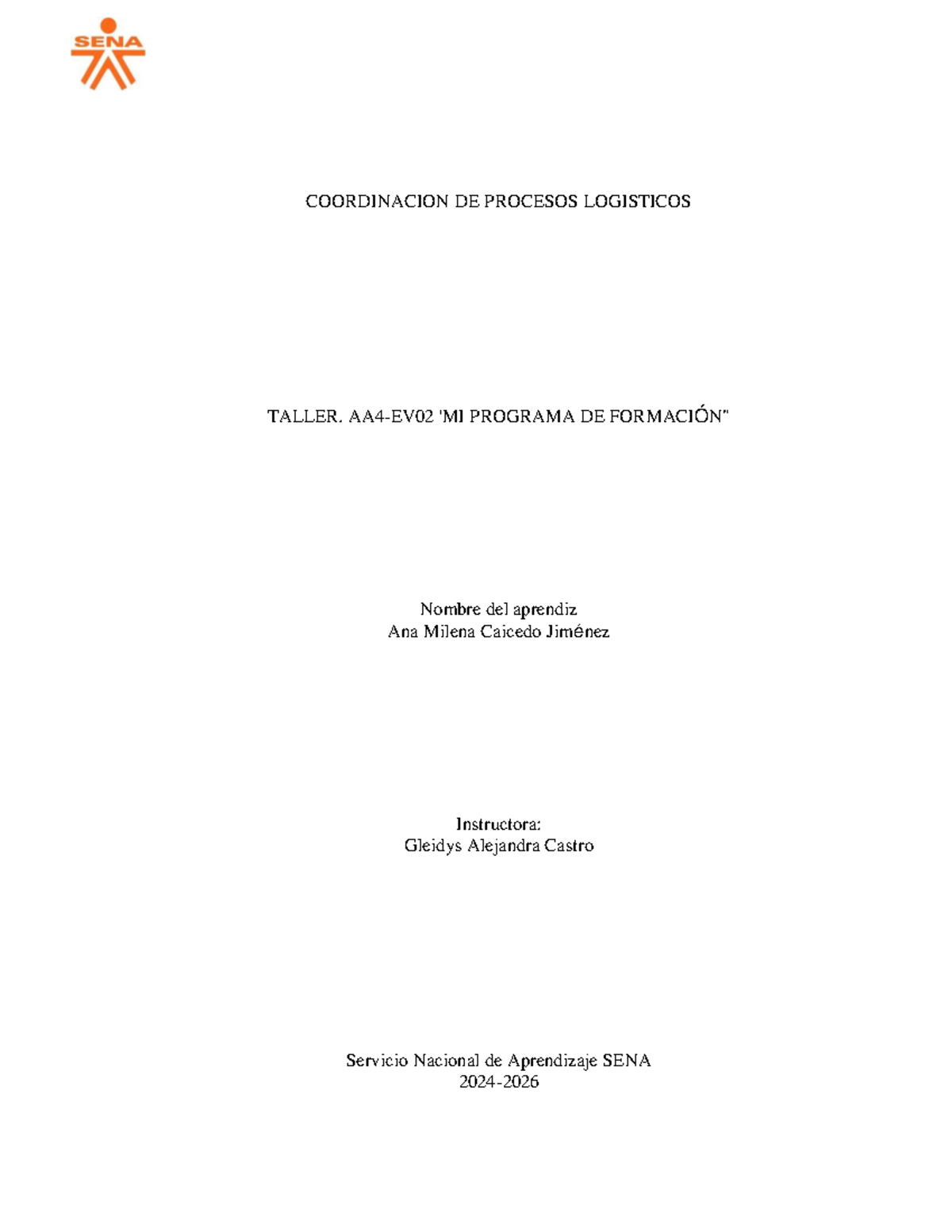 Taller SENA - Vbbbbb - COORDINACION DE PROCESOS LOGISTICOS TALLER. AA4 ...