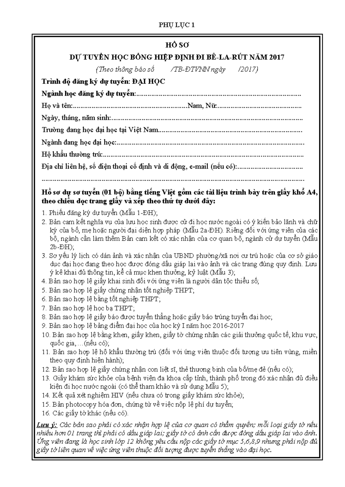 Phu luc 1 - Vbbbbb - PHỤ LỤC 1 HỒ SƠ DỰ TUYỂN HỌC BỔNG HIỆP ĐỊNH ĐI BÊ ...