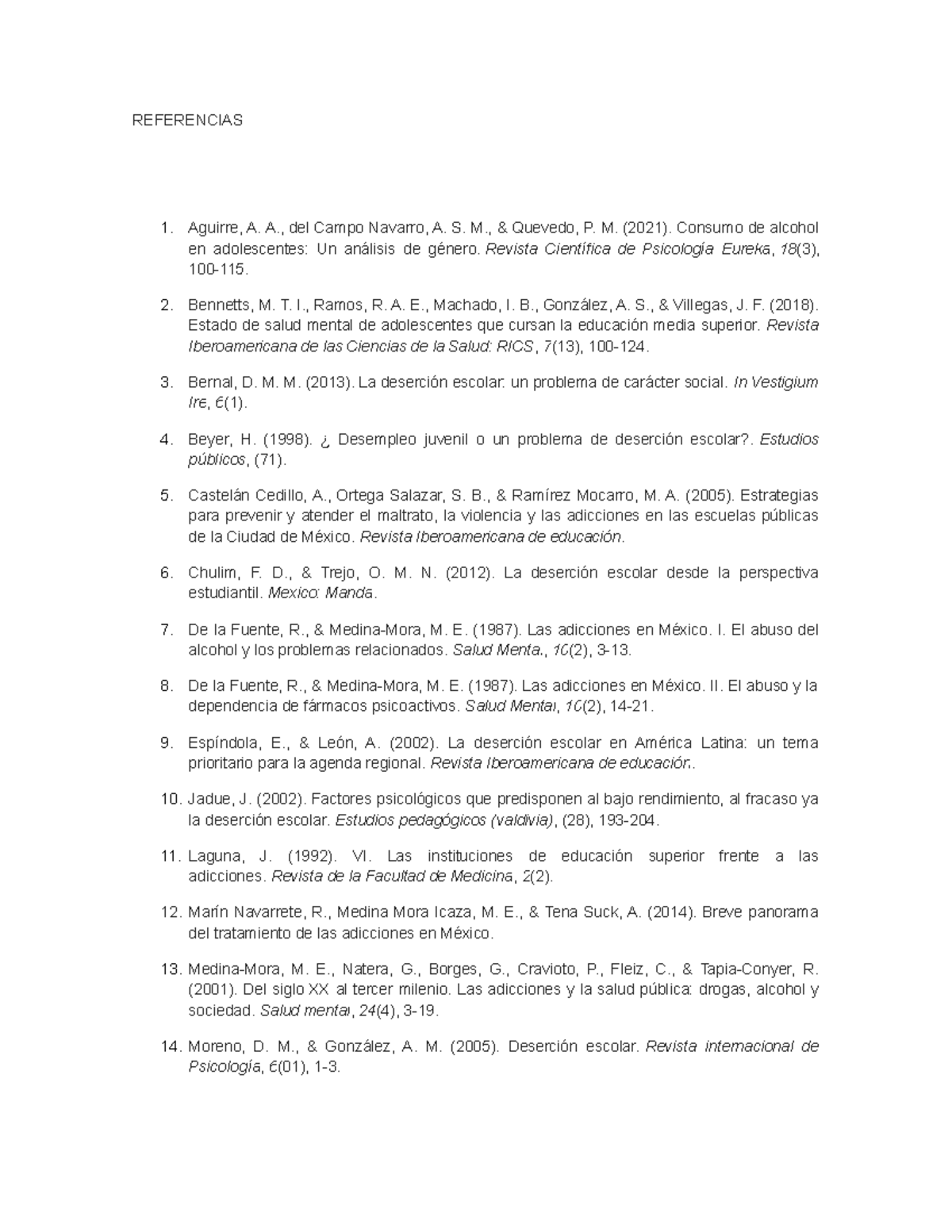 Referencias Adicciones - REFERENCIAS 1. Aguirre, A. A., del Campo ...