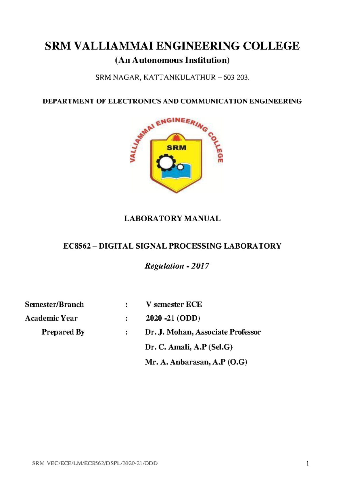 EC8562 Digital Signal Processing Laboratory: A Comprehensive Lab Manual ...